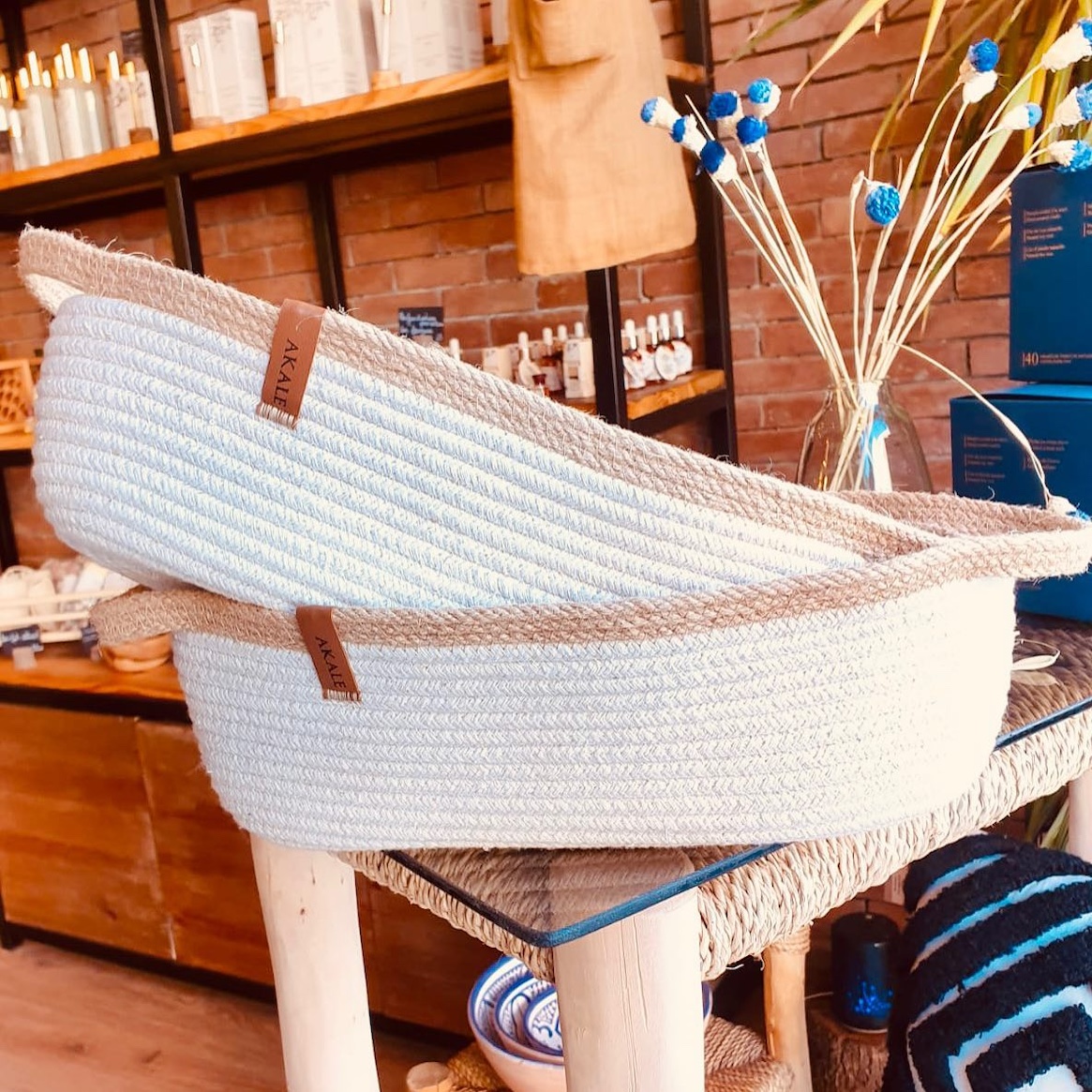Panier en fil de jute et coton
